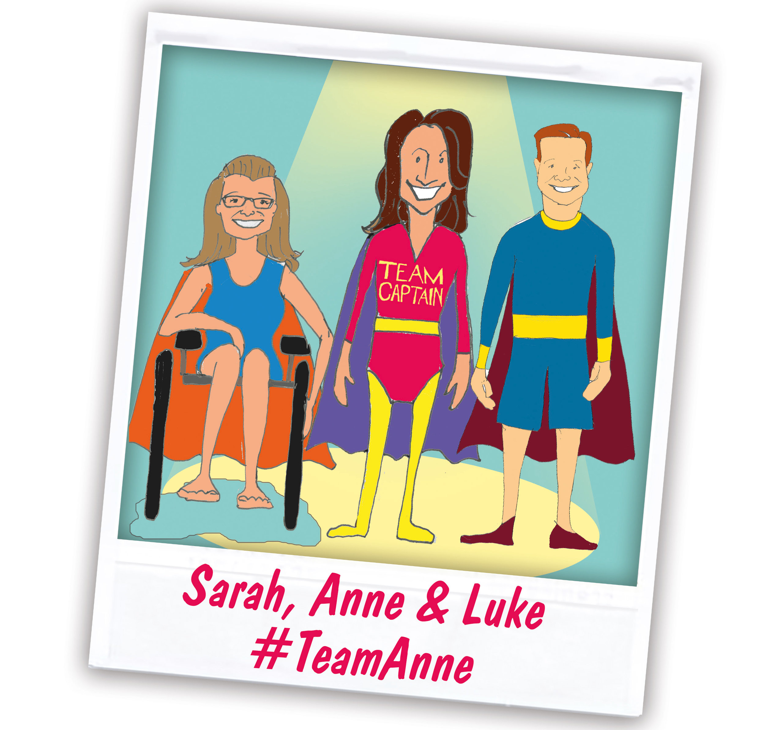 She's bagged herself some cracking support in the shape of swimmer Sarah, tandem partner, husband Simon, and push/runner Luke who'll be giving all they've got for #TeamAnne!